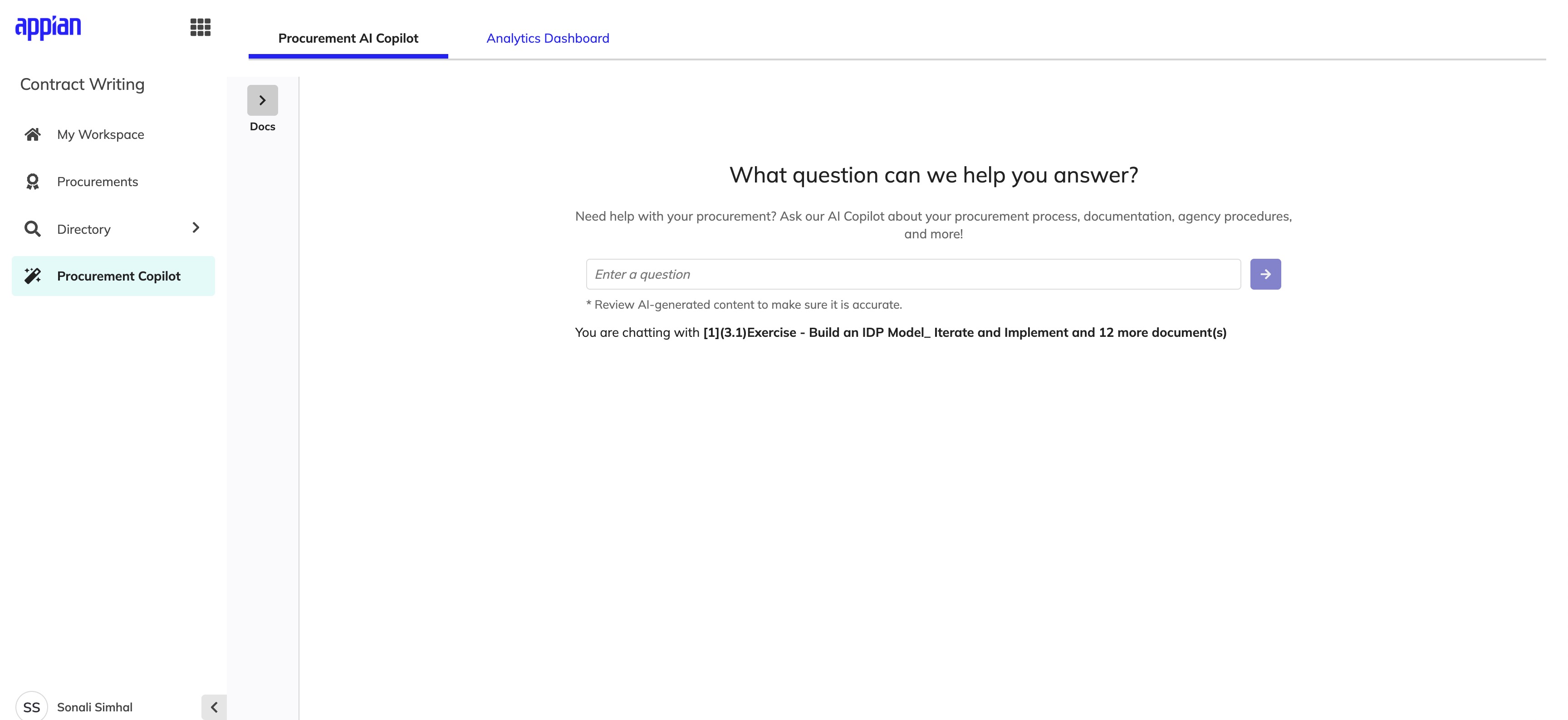Government contracting officers deal with a mountain of regulations, policies, and institutional knowledge that changes constantly. The Procurement AI Copilot is an AI-powered assistant I designed to help them cut through that complexity -- giving them a fast way to ask questions and get answers grounded in their own agency's documents.