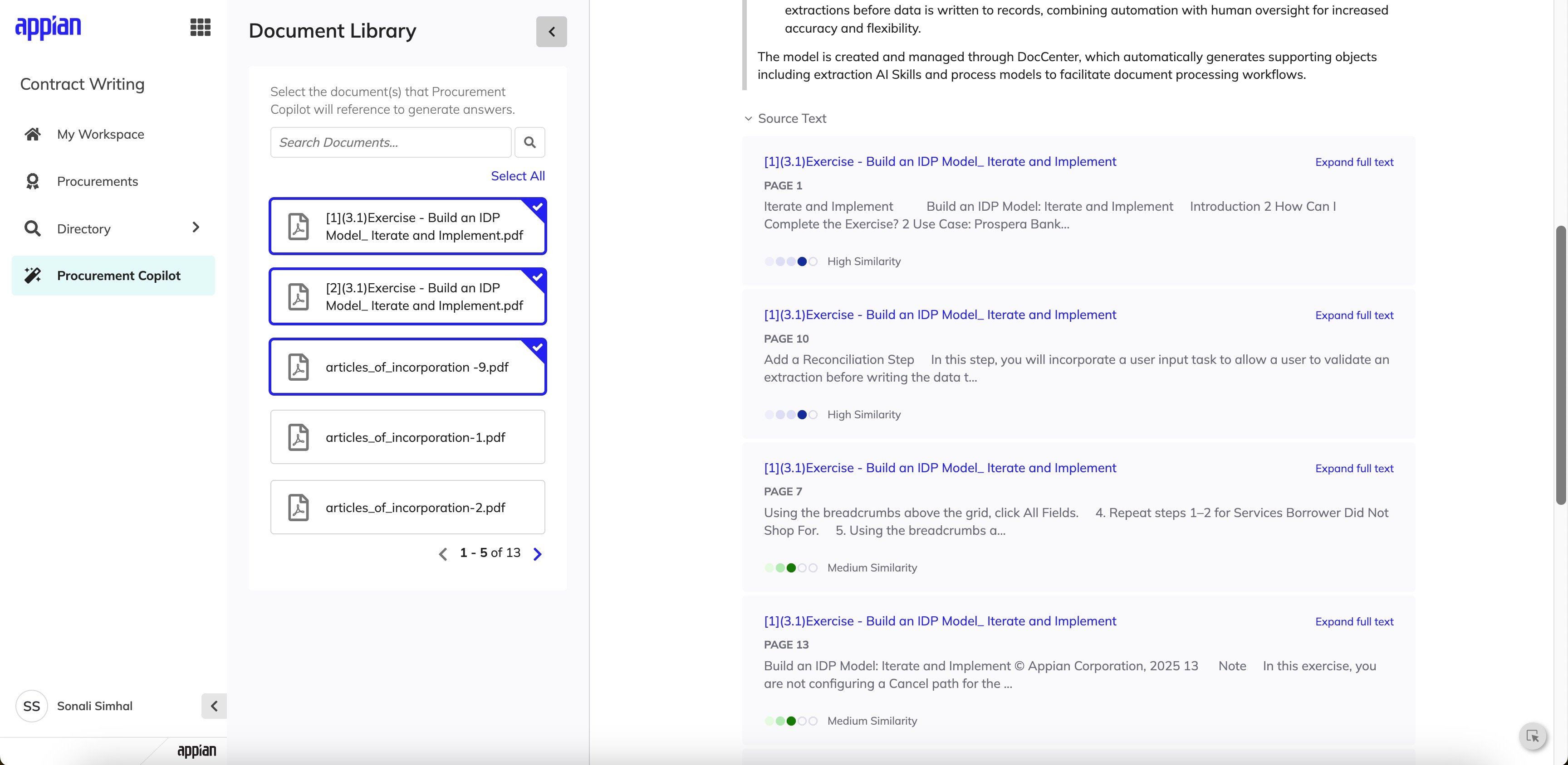 Expanding the Document Library to select which documents the AI references for answers