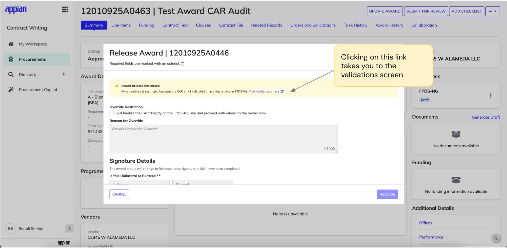 Contracting officers could successfully create a CAR from CW, but if validation errors occurred after initial creation, users were forced into a fragmented workflow: